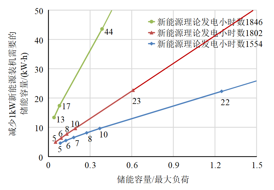 圖6 減少1kW常規(guī)電源裝機(jī)需要的儲能容量