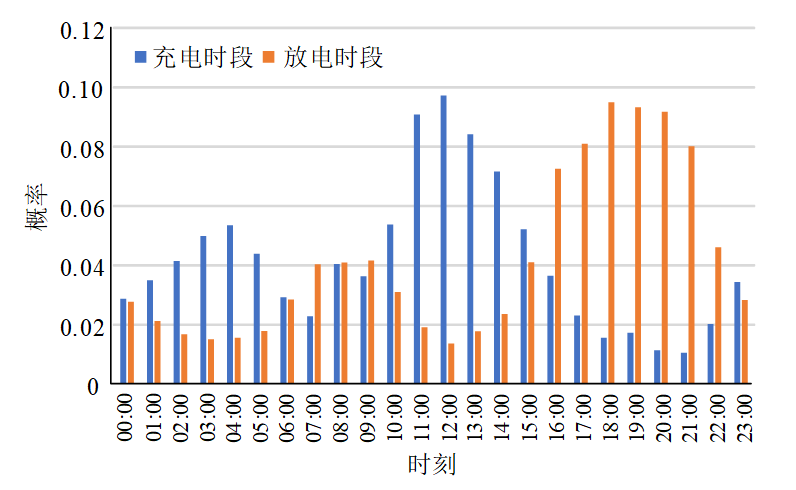 圖12 儲能充放電時段概率分布圖