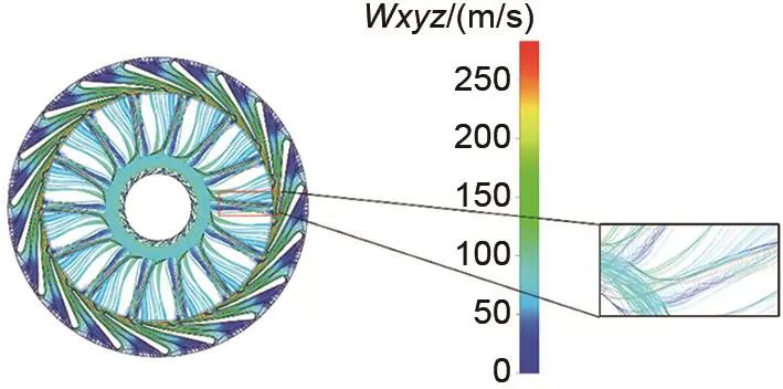 圖19 不同葉頂間隙下葉輪內(nèi)的流線分布