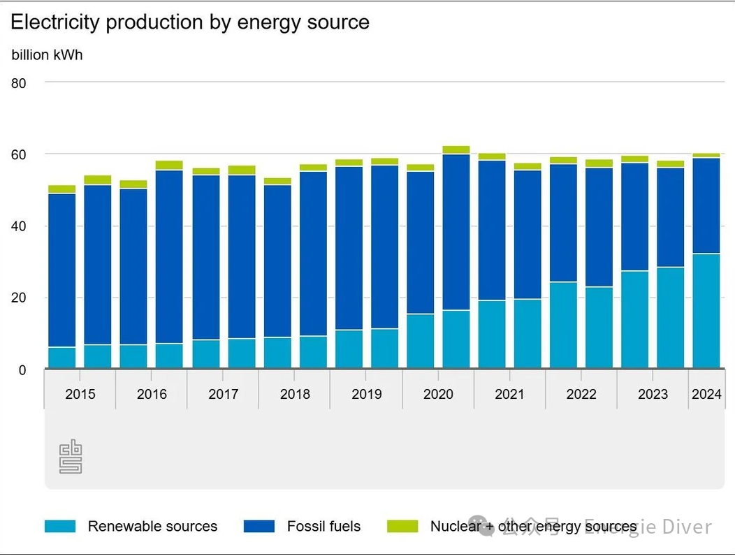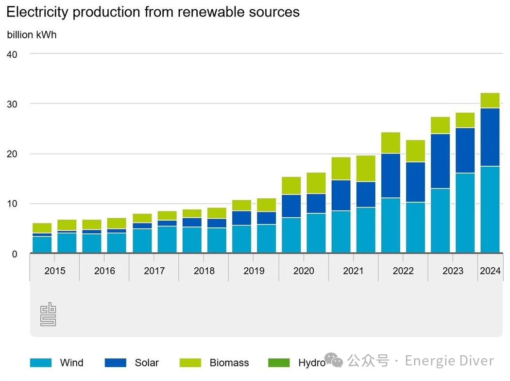 與其他許多國(guó)家一樣,荷蘭的目標(biāo)是到2050年實(shí)現(xiàn)凈零排放。2024年上半年,可再生能源占國(guó)內(nèi)能源生產(chǎn)的比例超過(guò)50%,總計(jì)323億千瓦時(shí)。風(fēng)能(尤其是海上風(fēng)能)是主要來(lái)源,其次是太陽(yáng)能和生物質(zhì)能。與此同時(shí),煤炭發(fā)電量較2023年下降了35%。