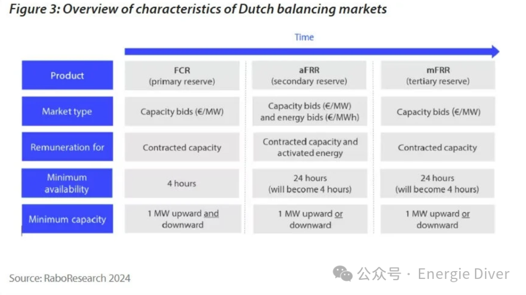 荷蘭的輔助服務(wù)包括平衡市場(chǎng)(FCR、aFRR、mFRR)以及不平衡和擁堵市場(chǎng)。