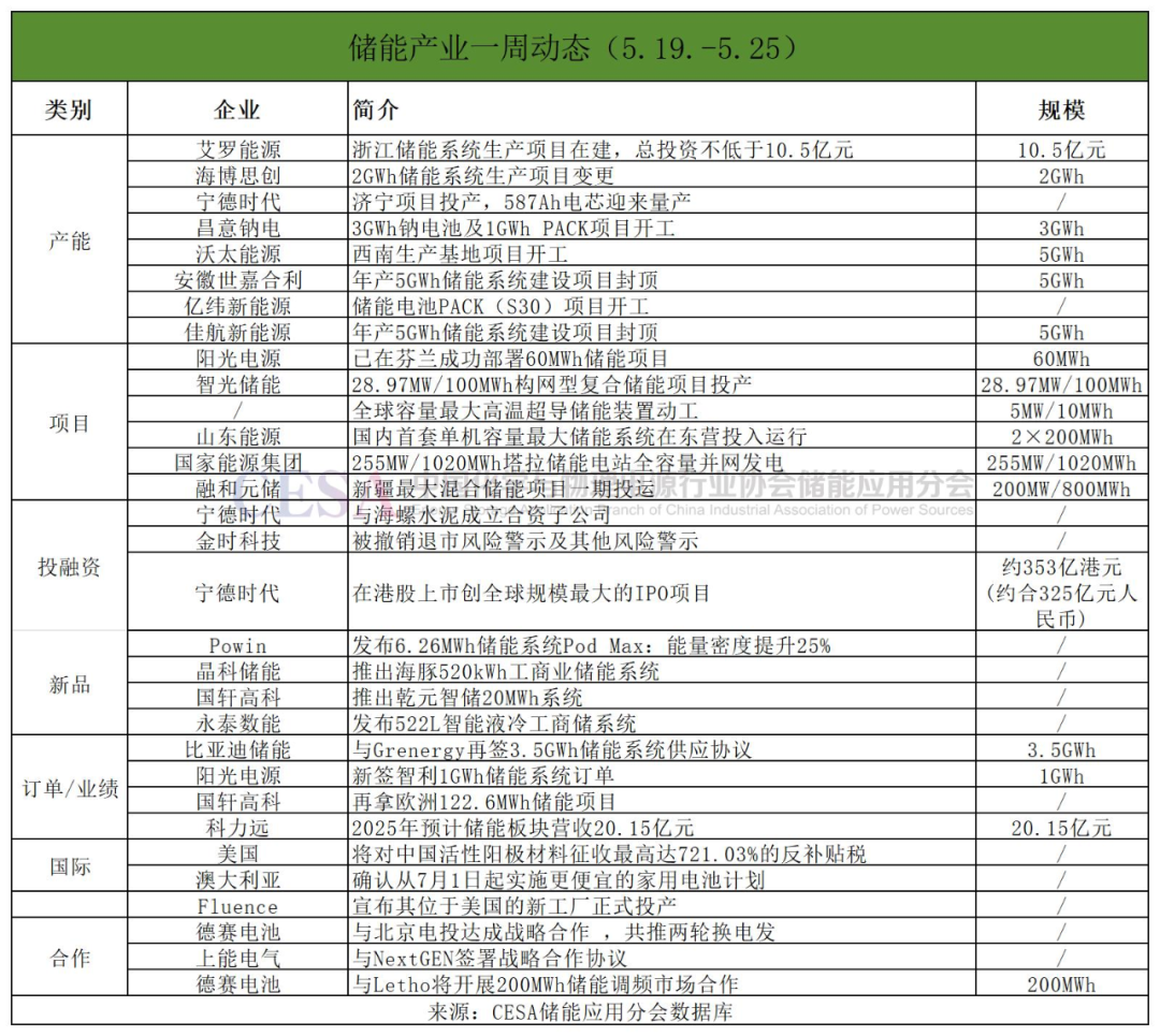 國際方面,美國將對(duì)中國活性陽極材料征收最高達(dá)721.03%的反補(bǔ)貼稅;澳大利亞政府確認(rèn)從7月1日起實(shí)施更便宜的家用電池計(jì)劃;美國系統(tǒng)集成商Fluence宣布其位于美國的新工廠正式投產(chǎn)。