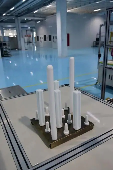 在即將量產(chǎn)的鈉鹽電池產(chǎn)線旁,朱詠民拿起一根陶瓷電解質(zhì)“機(jī)芯”解釋道,“最高機(jī)密”在這里。這根機(jī)芯是由特種結(jié)構(gòu)的氧化鋁制備的功能結(jié)構(gòu)一體化的陶瓷管,這種氧化鋁也是一種耐火材料,在陶瓷管內(nèi)填充的正極材料也是由耐高溫、不燃燒的無機(jī)鹽和無機(jī)金屬材料組成,整個(gè)機(jī)芯不含任何易燃物,具有材料的本征安全性。