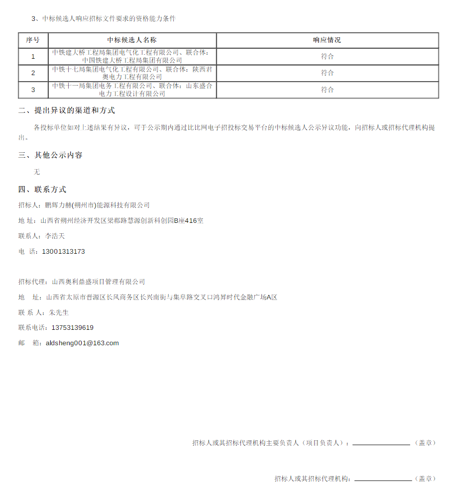 項目第二中標候選人為中鐵十七局集團電氣化工程有限公司、陜西君奧電力工程有限公司,費率報價98.70%。