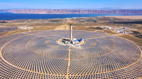 項目選址于青海海南州共和縣海南生態(tài)太陽能發(fā)電園區(qū)內(nèi),設計裝機容量為100萬千瓦,由90萬千瓦光伏電站和10萬千瓦光熱電站組成。其中10萬千瓦光熱電站,設計配置8小時熔鹽儲熱系統(tǒng),安裝48.平方米的五邊形定日鏡10310面,鏡場總采光面積約50萬平方米。項目通過不同發(fā)電方式的耦合互補,優(yōu)化電源規(guī)模配比,采用2萬千瓦電熔鹽加熱器(電磁式)回收90萬千瓦光伏電站的棄電,提高項目光資源利用率。在項目規(guī)劃和建設過程中,跨越高原地區(qū)冬季的嚴寒與復雜氣候,結(jié)合實際情況對方案進行反復論證和優(yōu)化,確保項目在技術和經(jīng)濟上的可行性。