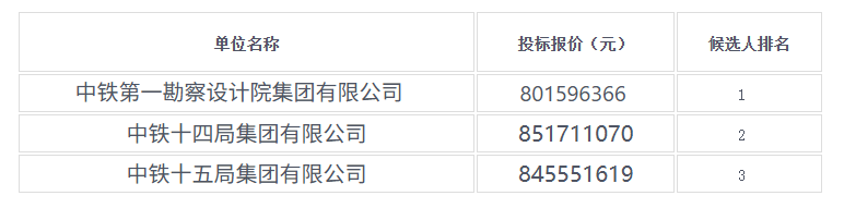 中鐵一院以報價80159.637萬元,折合單價2.004元/Wh預中標。中標候選人報價范圍為2.004-2.129元/Wh。