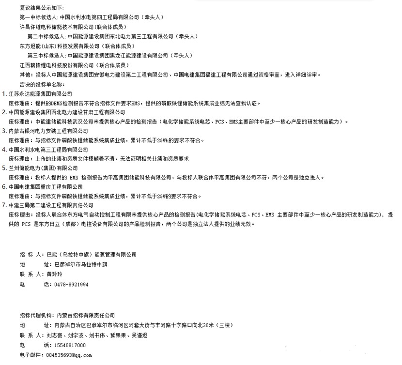 這場招標(biāo)活動因5月23日發(fā)布的復(fù)議公告而備受業(yè)界矚目。公告顯示,共有9家企業(yè)的投標(biāo)被否決,同時有3家企業(yè)提出了異議。這些細(xì)節(jié)不僅揭示了儲能行業(yè)在快速發(fā)展過程中暴露出的行業(yè)規(guī)范與市場秩序問題,更成為了推動行業(yè)向更高質(zhì)量、更規(guī)范化方向轉(zhuǎn)型升級的重要契機。