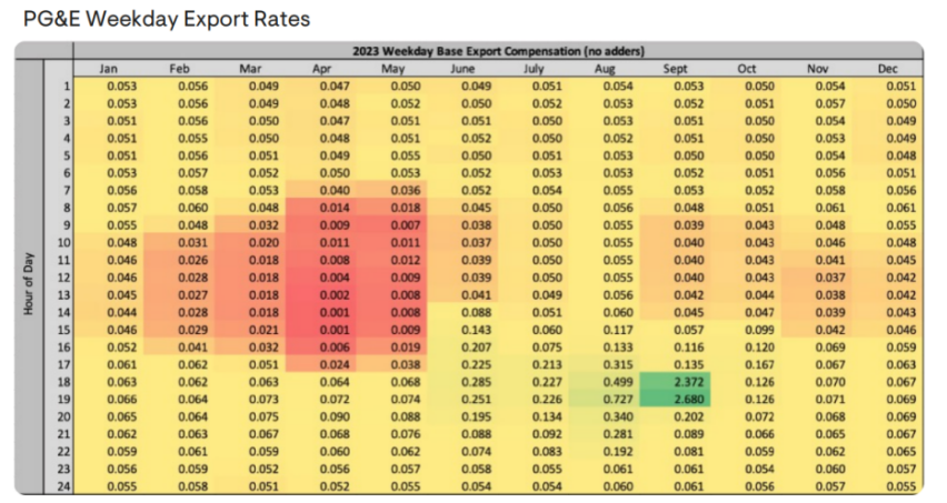 圖5 美國加州PG&E公司NEM3.0電價