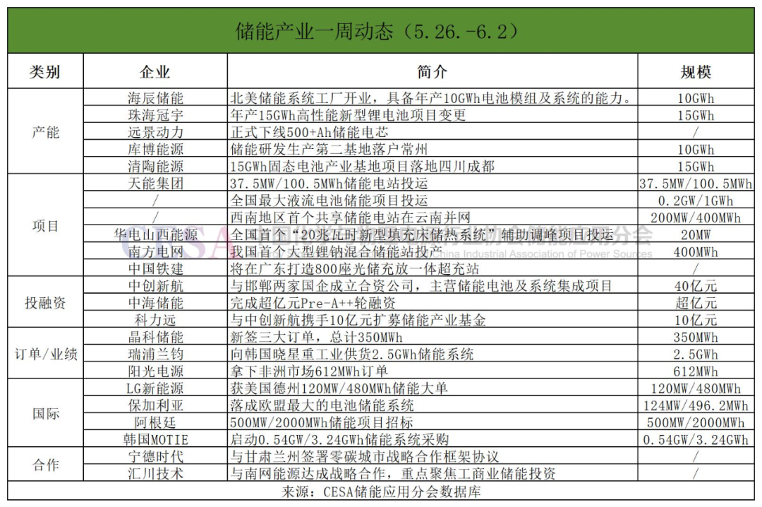 投融資方面,中創(chuàng)新航與邯鄲兩家國企成立合資公司,主營儲能電池及系統(tǒng)集成項目;鐵鉻液流企業(yè)中海儲能獲得超億元融資;科力遠與中創(chuàng)新航攜手10億元擴募儲能產(chǎn)業(yè)基金。