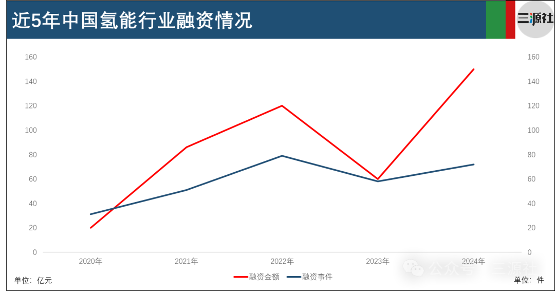 但在燃料電池領(lǐng)域,經(jīng)過2018年的海外技術(shù)歸國潮、2020年的億華通成功上市以及2021年示范城市群補(bǔ)貼政策等刺激下,國內(nèi)燃料電池行業(yè)成為了一度需要靠“搶”才能投資的熱門賽道。根據(jù)三源社統(tǒng)計(jì),2020年-2022年僅燃料電池行業(yè)的融資金額高達(dá)150億。
