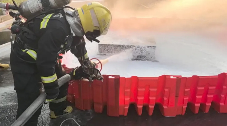 消防員立刻同步調(diào)派叉車轉(zhuǎn)移起火電池組至安全區(qū)域,結(jié)合鋰電池起火的特殊性,最終決定使用“圍堰淹沒處置戰(zhàn)法”快速控制火情,有效避免次生災(zāi)害。