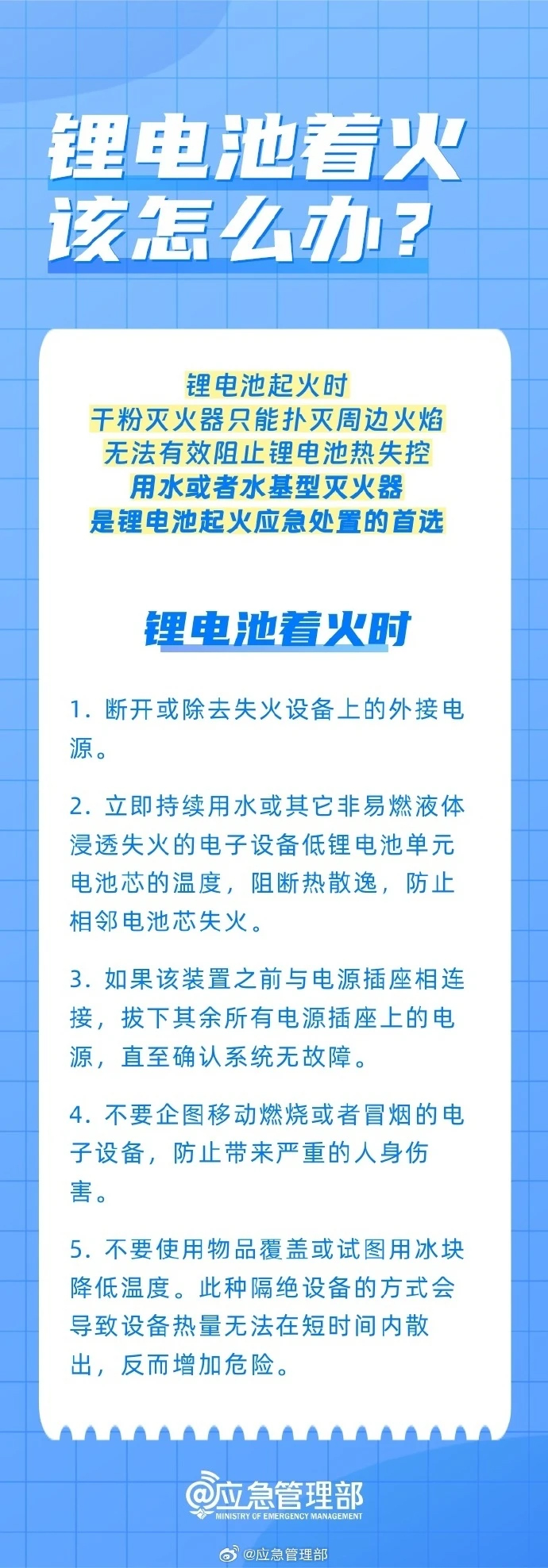 那么,若是遇到鋰電池著火怎么辦?一起來看看吧!↓↓↓