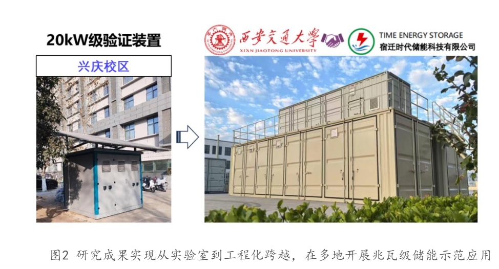 基于上述研究成果,團(tuán)隊(duì)積極推進(jìn)“產(chǎn)學(xué)研用金”一體化成果轉(zhuǎn)化進(jìn)程。依托核心電解質(zhì)分子調(diào)控研制的關(guān)鍵技術(shù),團(tuán)隊(duì)與宿遷時(shí)代儲(chǔ)能科技有限公司、中國(guó)華能集團(tuán)有限公司、中國(guó)長(zhǎng)江三峽集團(tuán)有限公司、國(guó)家管網(wǎng)集團(tuán)儲(chǔ)能技術(shù)公司以及等多家央企及行業(yè)龍頭企業(yè)開展深入合作,圍繞水系有機(jī)液流電池關(guān)鍵技術(shù)聯(lián)合攻關(guān)與應(yīng)用落地。目前,已在內(nèi)蒙古、福建等地聯(lián)合建設(shè)兆瓦級(jí)新型水系有機(jī)液流電池儲(chǔ)能示范項(xiàng)目,初步構(gòu)建起從材料設(shè)計(jì)、體系集成到工程化應(yīng)用的完整技術(shù)鏈條,為我國(guó)清潔能源大規(guī)模儲(chǔ)能系統(tǒng)提供了可復(fù)制、可推廣的技術(shù)解決方案。