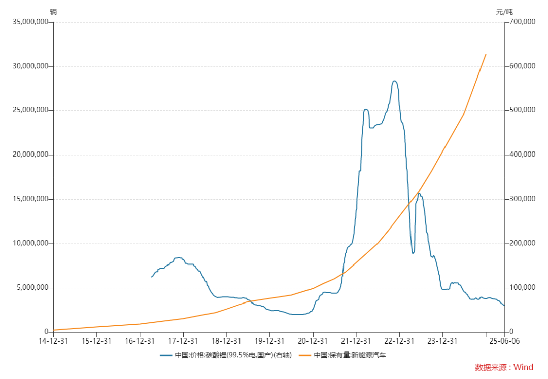 對此,有市場人士指出,碳酸鋰作為新能源車的核心原材料,其價(jià)格下跌使得車企有了降價(jià)的空間;而車價(jià)的下跌則會(huì)有效刺激銷量,反過來提振對碳酸鋰的需求,從而形成正反饋效應(yīng)。但問題是,為何在需求依舊增長的背景下,碳酸鋰價(jià)格在這兩年半時(shí)間里卻出現(xiàn)了崩跌?
