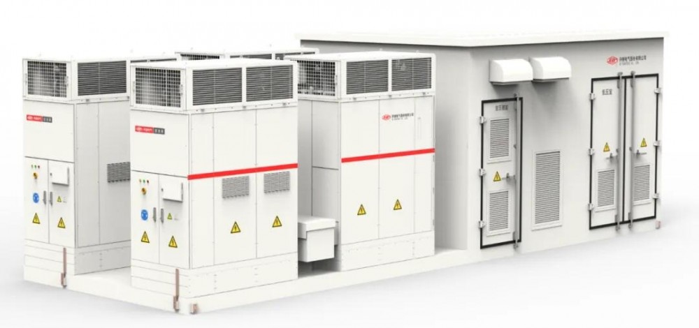 在項(xiàng)目推進(jìn)過程中,為節(jié)省儲(chǔ)能電站占地面積,采用了5MW/10MWh構(gòu)網(wǎng)儲(chǔ)能單元,交流側(cè)采用4機(jī)構(gòu)網(wǎng)儲(chǔ)能變流器并聯(lián)技術(shù),將4臺(tái)構(gòu)網(wǎng)儲(chǔ)能變流器集成于一套5MW構(gòu)網(wǎng)儲(chǔ)能升壓一體機(jī)中,較傳統(tǒng)構(gòu)網(wǎng)方案占地面積降低30%。