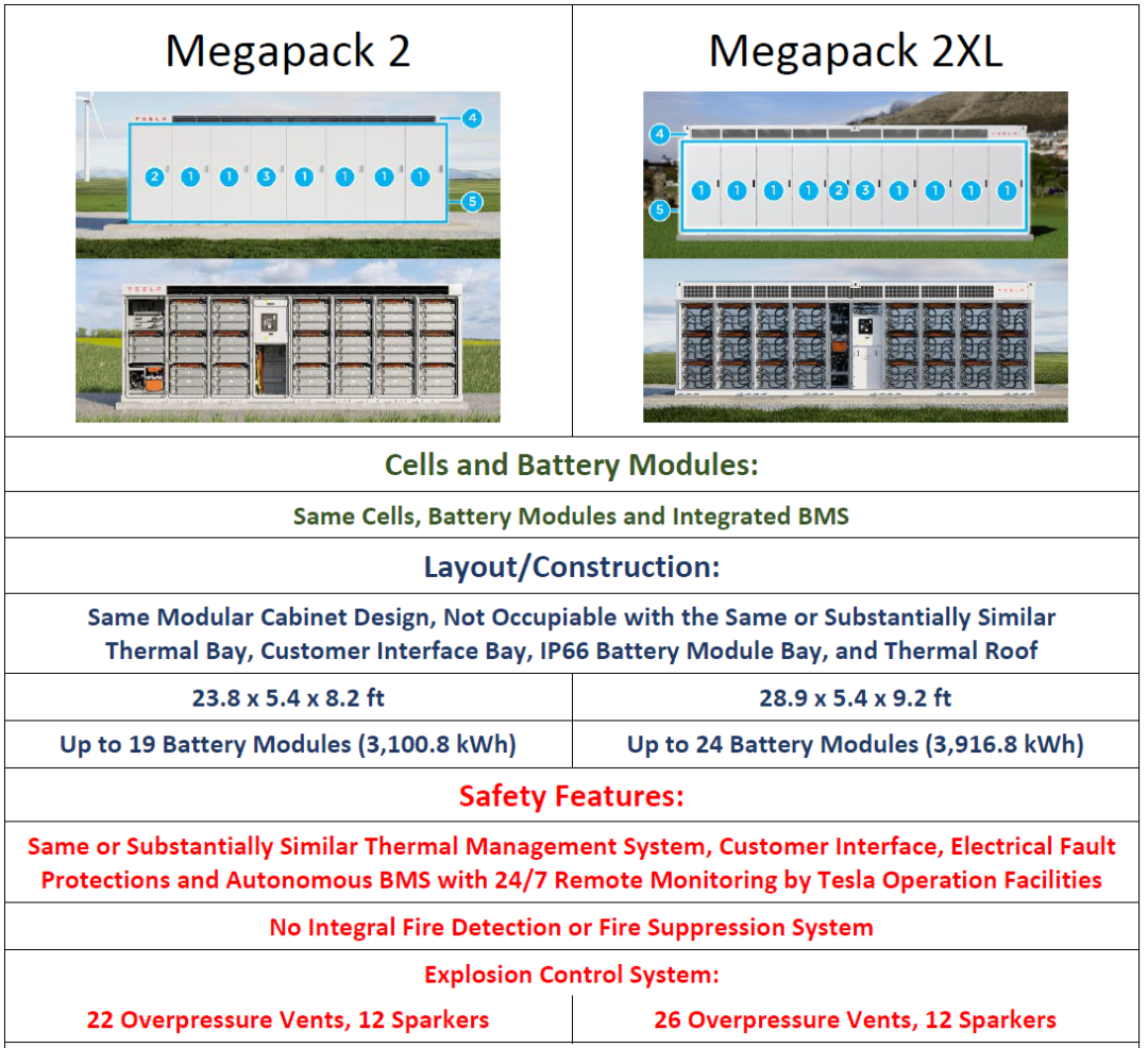 中國(guó)儲(chǔ)能網(wǎng)訊:特斯拉Megapack2和Megapack2XL(后續(xù)簡(jiǎn)稱為MP2/MP2XL)是一種交流儲(chǔ)能艙。MP2是MP1的更新版本,采用類似的爆燃控制系統(tǒng),如壓敏通風(fēng)口和火花器系統(tǒng),以管理爆炸風(fēng)險(xiǎn)。MP2XL是MP2的大容量版,采用相同的核心安全技術(shù)平臺(tái)(電池、通風(fēng)口、火花器系統(tǒng)等)。然而,MP2/MP2XL使用C廠的LFP電池,而不是MP1中使用的NMC和NCA電池。