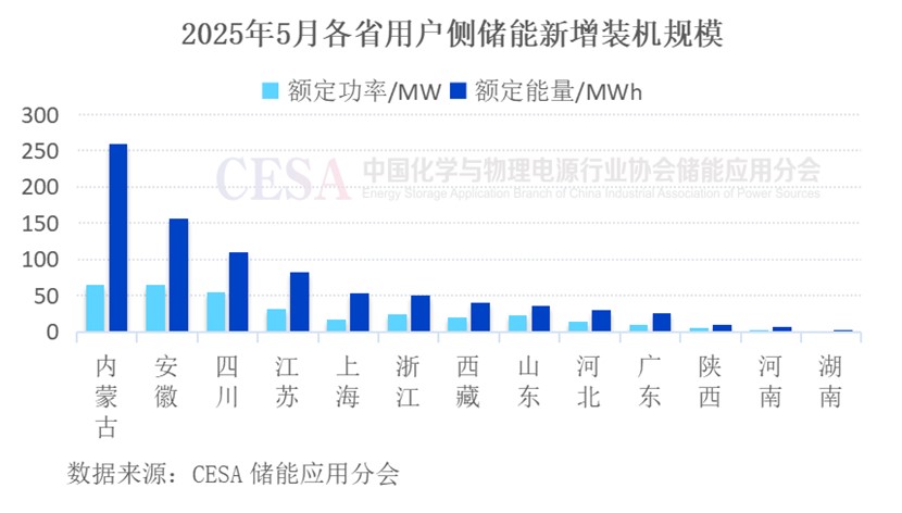 據(jù)CESA儲能應(yīng)用分會數(shù)據(jù)庫不完全統(tǒng)計,2025年5月新增用戶側(cè)儲能并網(wǎng)/投運項目85個,總規(guī)模為0.38GW/1.51GWh。