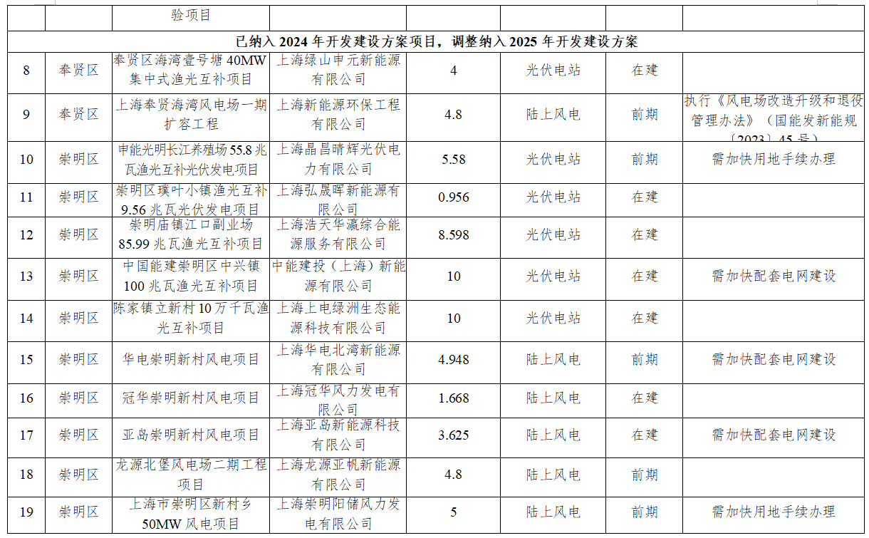 附件:上海市2025年陸上風電和光伏電站開發(fā)建設項目清單