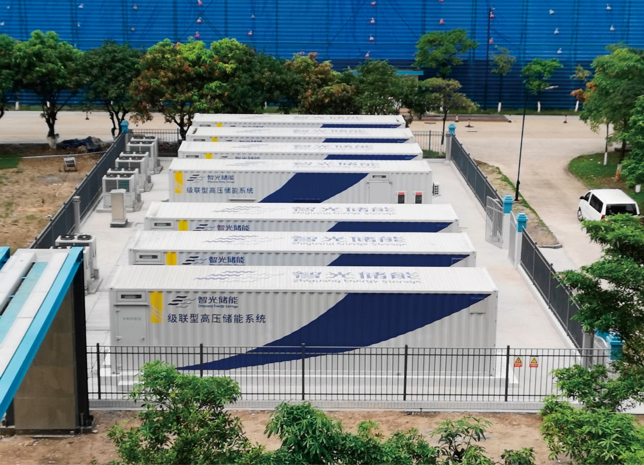 級(jí)聯(lián)高壓儲(chǔ)能技術(shù)——將直流并聯(lián)的低壓儲(chǔ)能系統(tǒng)“拆分”為許多標(biāo)準(zhǔn)化的小儲(chǔ)能單元——每個(gè)單元獨(dú)立管理一組電池并配備H橋逆變器,再像搭積木一樣在交流側(cè)將這些單元級(jí)聯(lián)組合起來(lái),直接把電壓升到10 kV、35 kV甚至更高,與電網(wǎng)“高壓直掛”,省去了傳統(tǒng)的大型升壓變壓器。這樣的設(shè)計(jì)不僅使系統(tǒng)單機(jī)功率更大、循環(huán)效率更高,還能避免并聯(lián)電池組間的SOC不一致導(dǎo)致的容量衰減。