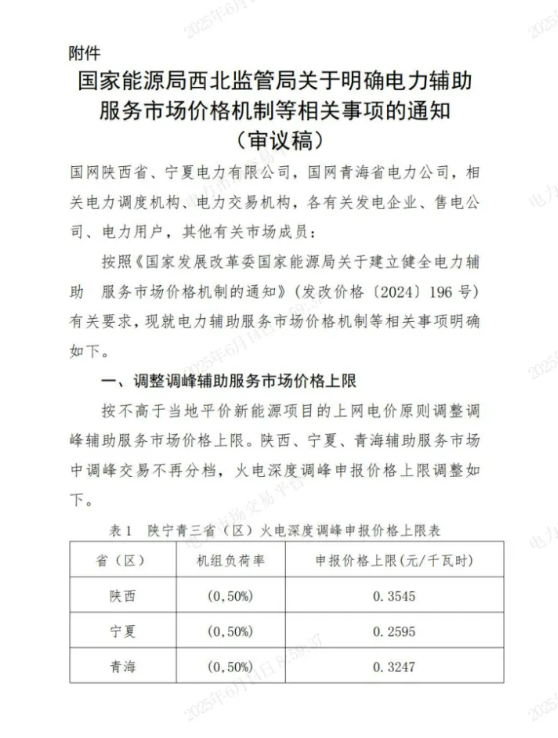 按不高于當?shù)仄絻r新能源項目的上網(wǎng)電價原則調(diào)整調(diào)峰輔助服務(wù)市場價格上限。陜西、寧夏、青海輔助服務(wù)市場中調(diào)峰交易不再分檔,火電深度調(diào)峰申報價格上限調(diào)整如下: