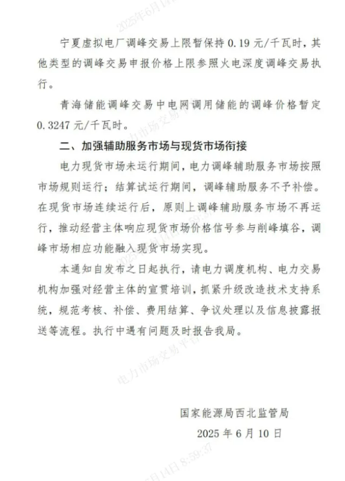 寧夏虛擬電廠調(diào)峰交易上限暫保持0.19元/kWh,其他類型的調(diào)峰交易申報價格上限參照火電深度調(diào)峰交易執(zhí)行。