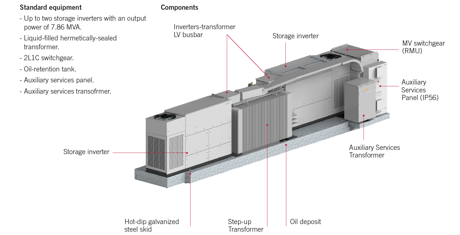 上圖儲能單元內(nèi)變流升壓一體機(jī)(NR)采用twin skid(PCS分別布置在一體機(jī)兩邊),采用這種形式的變流升壓一體機(jī),在“5一”或“啞鈴”布局中,直流電纜敷設(shè)更方便和節(jié)約。