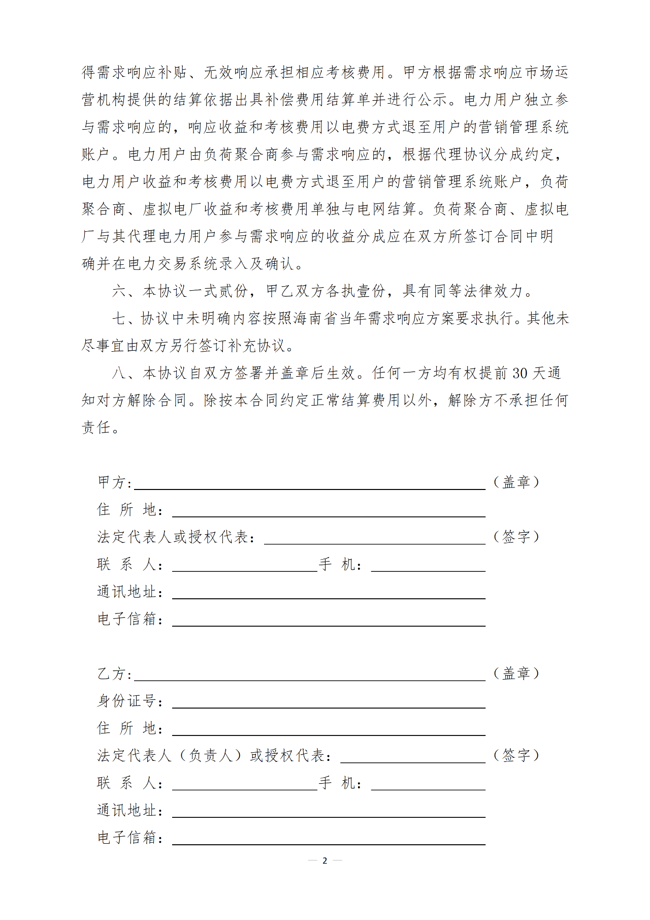 2.海南省電力需求側(cè)響應合作協(xié)議模板