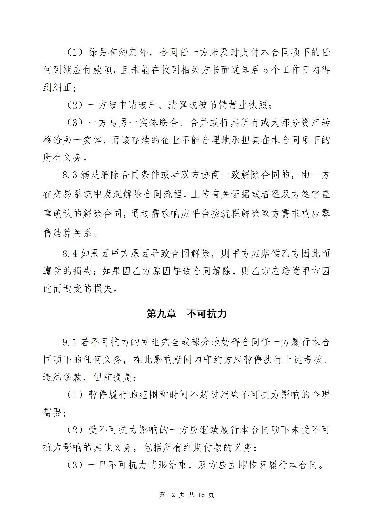(四)與電網(wǎng)企業(yè)簽訂合作協(xié)議,并按規(guī)則參與需求響應交易,做好響應資源管控和運營,根據(jù)交易結(jié)果按時執(zhí)行需求響應;