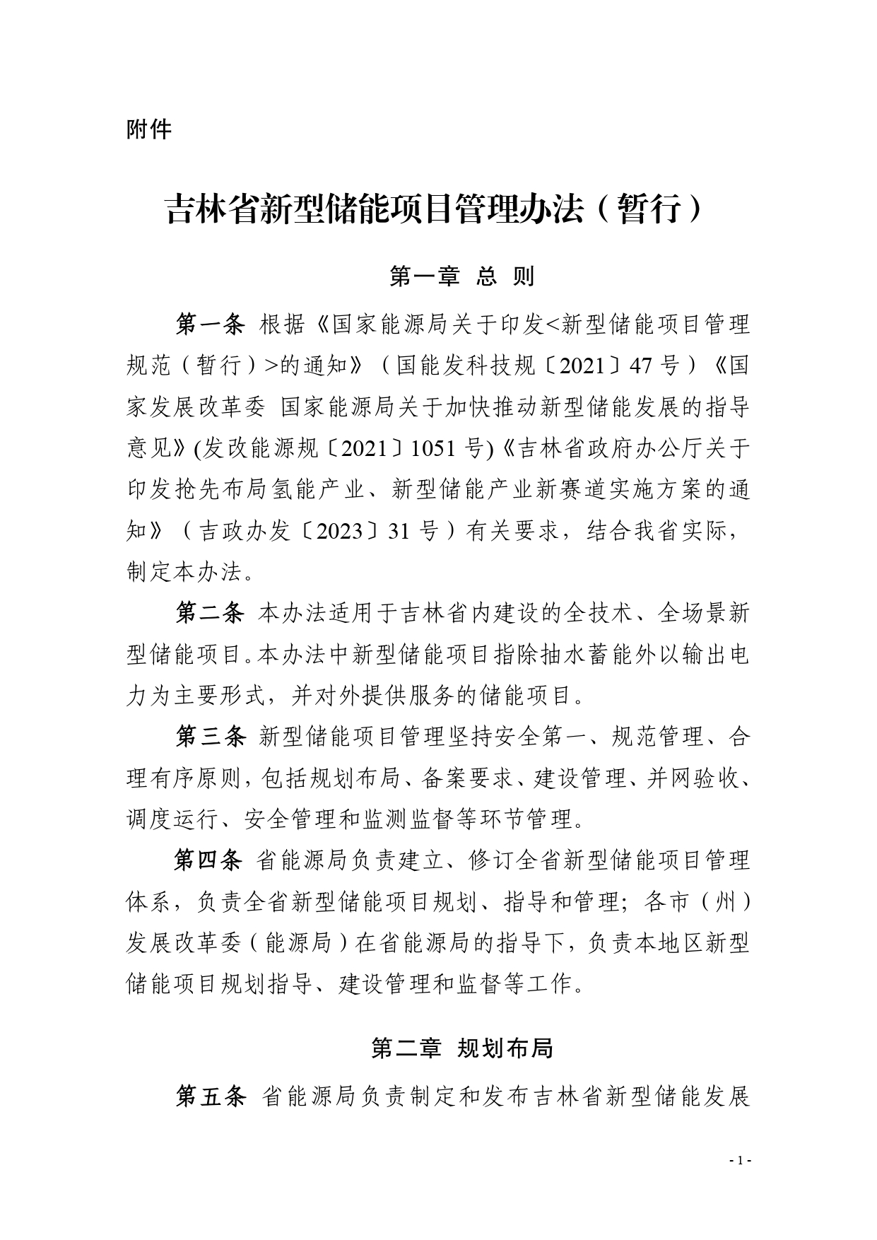 吉林省能源局 吉林省發(fā)展和改革委員會(huì)關(guān)于印發(fā)《吉林省新型儲(chǔ)能項(xiàng)目管理辦法(暫行)》的通知