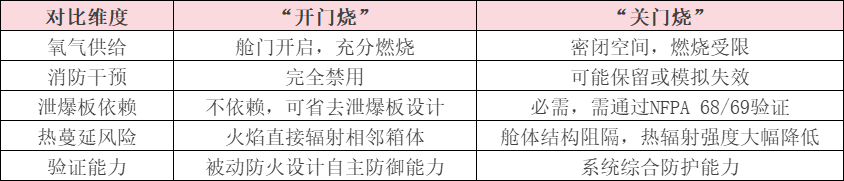 “開門燒”與“關門燒”代表了儲能系統(tǒng)防火安全驗證的兩種重要思路和技術路徑。