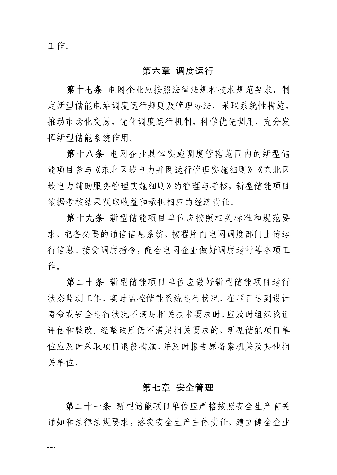 《管理辦法》明確,電網(wǎng)企業(yè)應(yīng)根據(jù)發(fā)布的吉林省新型儲能發(fā)展規(guī)劃和全省新型儲能項目庫,統(tǒng)籌開展配套電網(wǎng)規(guī)劃和建設(shè),配套電網(wǎng)工程建設(shè)應(yīng)與新型儲能項目建設(shè)協(xié)調(diào)進行。建立和完善新型儲能項目并網(wǎng)服務(wù)指引和管理規(guī)范,公平無歧視為新型儲能項目提供電網(wǎng)接入服務(wù)。電網(wǎng)企業(yè)具體實施調(diào)度管轄范圍內(nèi)的新型儲能項目參與《東北區(qū)域電力并網(wǎng)運行管理實施細則》《東北區(qū)域電力輔助服務(wù)管理實施細則》的管理與考核,新型儲能項目依據(jù)考核結(jié)果獲取收益和承擔相應(yīng)的經(jīng)濟責任。