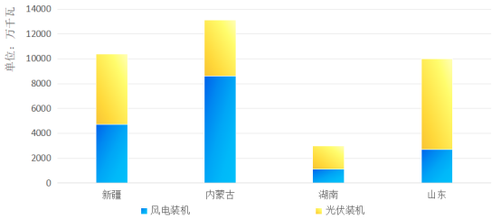 圖1 新、蒙、湘、魯風光裝機對比(截至2024年底)