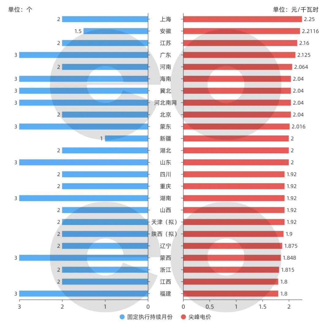各地夏季尖峰電價的執(zhí)行時段主要集中在7—8月的晚高峰時段,尖峰電價較平段價格上浮180%—225%。