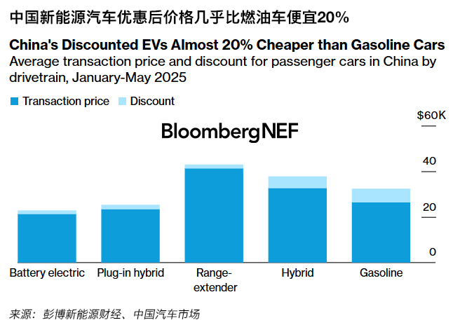 2025年1月至5月,中國新能源汽車交易價格較燃油車的平均溢價