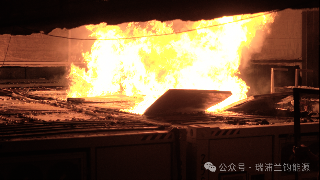 在儲能系統(tǒng)測試中,采用滿裝、滿充的電池艙是極為嚴(yán)苛的條件。此狀態(tài)下,電池存儲能量最大、化學(xué)活性最高,一旦熱失控,釋放的能量最為劇烈,火勢蔓延及對周邊設(shè)備的破壞風(fēng)險也顯著增加。瑞浦蘭鈞選擇在此極限狀態(tài)下進(jìn)行火燒試驗,旨在真實模擬極端事故場景,嚴(yán)苛驗證產(chǎn)品的被動安全能力。