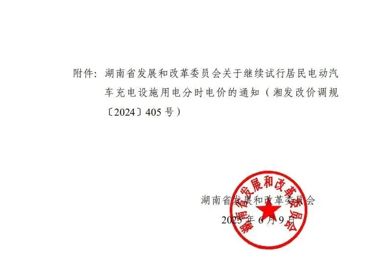 湖南省繼續(xù)試行居民充電設(shè)施用電分時電價政策