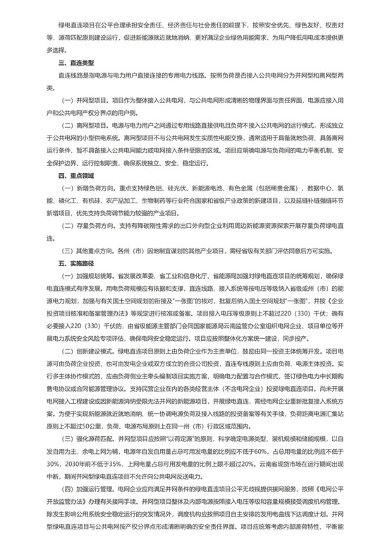云南的戰(zhàn)略布局將綠電直連深度融入“資源經(jīng)濟(jì)、口岸經(jīng)濟(jì)、園區(qū)經(jīng)濟(jì)”三大戰(zhàn)略。允許出口型企業(yè)通過(guò)直連線(xiàn)路“就地取電”,既消化未并網(wǎng)新能源項(xiàng)目,又幫助企業(yè)應(yīng)對(duì)國(guó)際碳壁壘;重點(diǎn)扶持綠色鋁、硅光伏、新能源電池等低碳產(chǎn)業(yè),形成“新能源開(kāi)發(fā)-綠色制造-碳資產(chǎn)交易”的價(jià)值鏈閉環(huán);在電網(wǎng)薄弱地區(qū)布局離網(wǎng)型項(xiàng)目,推動(dòng)“光伏+農(nóng)業(yè)”“風(fēng)電+礦產(chǎn)”等復(fù)合開(kāi)發(fā)模式,實(shí)現(xiàn)土地資源立體化利用。