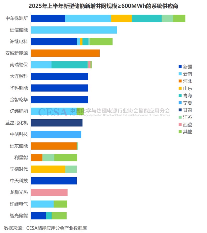 據CESA儲能應用分會根據公開信息不完全統(tǒng)計,2025年上半年新增投運的項目中,中車株洲所供貨量一騎絕塵,位居全國首位。