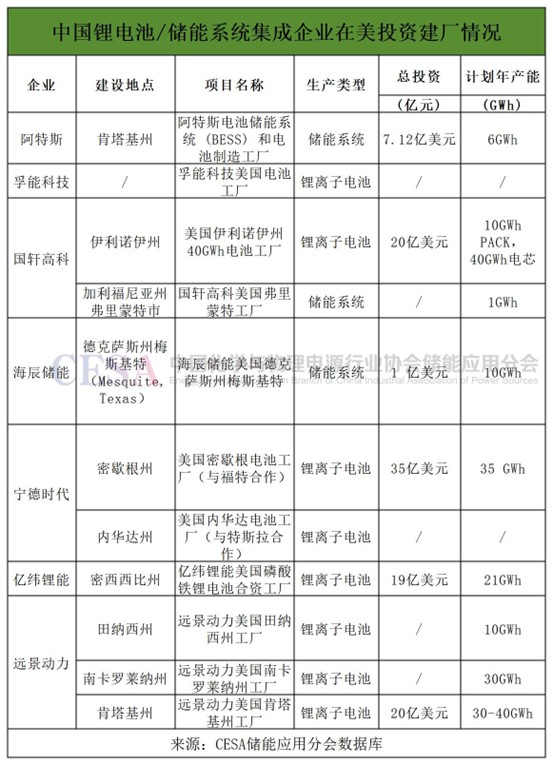 在此情況下,中國(guó)儲(chǔ)能企業(yè)也加快了在美國(guó)市場(chǎng)的產(chǎn)能布局。