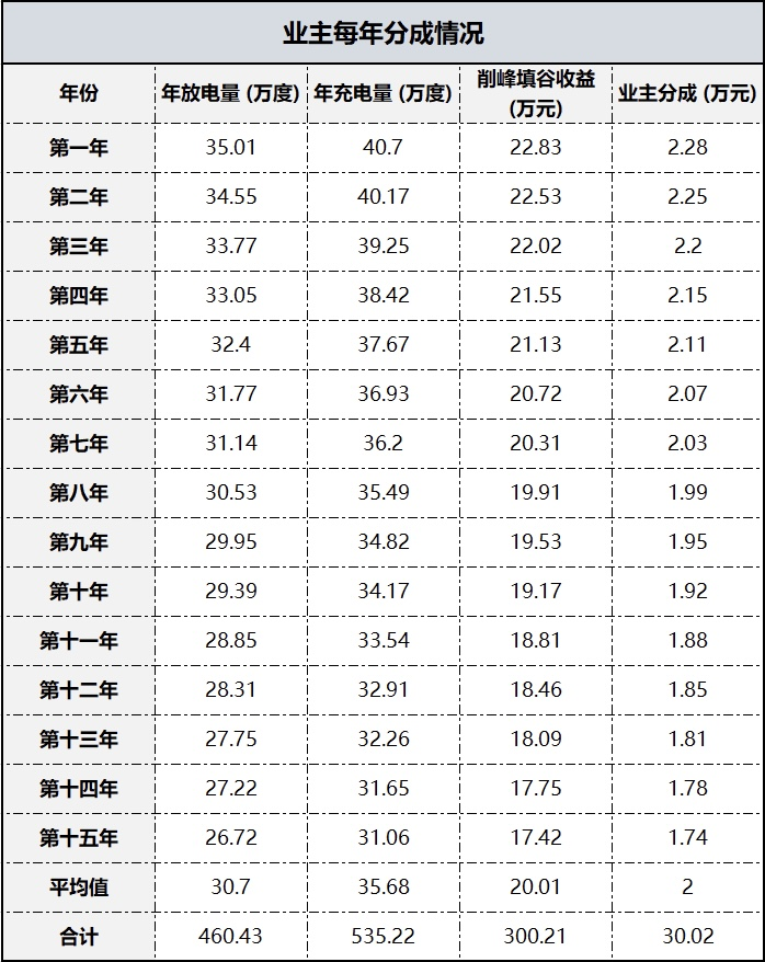 從財(cái)務(wù)模型測(cè)算的結(jié)果來(lái)看,如果采用業(yè)主自投模式,基本上可以將回收周期控制在4.3年左右,如果疊加上“長(zhǎng)循環(huán)、低衰減”的儲(chǔ)能設(shè)備,回收周期還可以進(jìn)一步縮短,這個(gè)數(shù)據(jù)足以打動(dòng)大量的高耗能企業(yè)業(yè)主裝機(jī);而采用EMC模式,采用9:1分成的方案,1MWh的儲(chǔ)能電站,僅峰谷套利的收益,業(yè)主首年分成可以達(dá)到2.28萬(wàn)元,15年總分成可達(dá)到30萬(wàn)元。