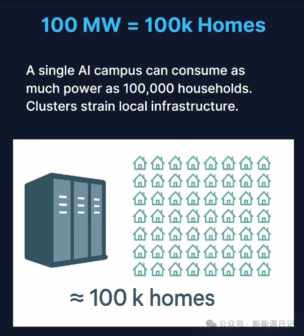 電網基礎設施在設計之初未預見AI革命帶來的需求激增。一個100兆瓦數(shù)據(jù)中心集群的耗電量可供10萬戶家庭使用,而規(guī)劃中的新一代數(shù)據(jù)中心規(guī)模更大,可滿足200萬戶家庭用電需求。這種集中化用電特性使數(shù)據(jù)中心選址越來越傾向電力資源豐富地區(qū),也促使科技企業(yè)直接參與能源基礎設施建設——谷歌、微軟等通過電力購買協(xié)議(PPA)已獲得120吉瓦可再生能源發(fā)電能力。