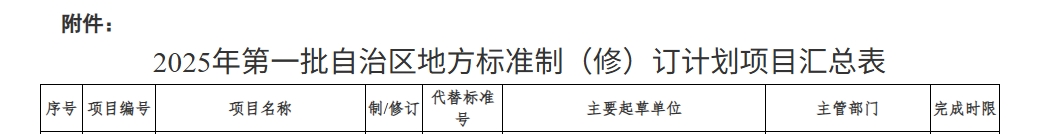 附件:2025年第一批自治區(qū)地方標(biāo)準(zhǔn)制(修)訂計劃項目匯總表