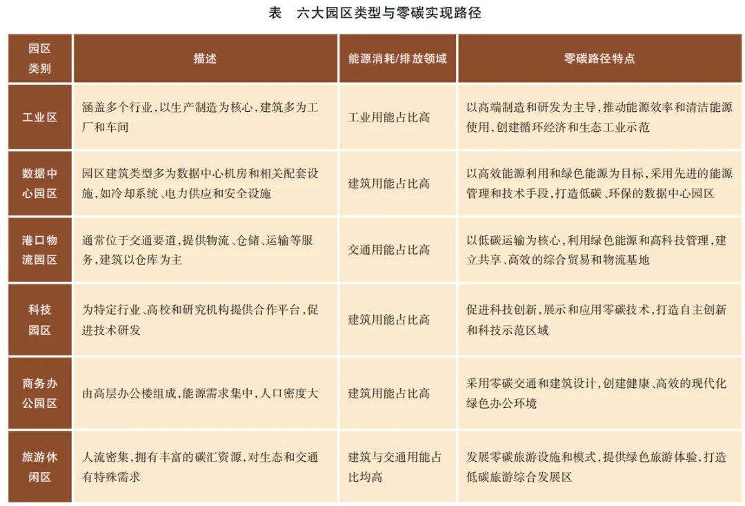 下表基于六大園區(qū)類型揭示了不同園區(qū)功能定位與零碳路徑的關(guān)聯(lián)性。工業(yè)區(qū)與港口物流園分別以工業(yè)用能、交通用能為主導(dǎo),需聚焦清潔能源替代及效率提升;數(shù)據(jù)中心、科技園和商務(wù)園均屬建筑用能密集型,依賴智慧能源管理(如數(shù)據(jù)中心PUE優(yōu)化)和零碳建筑設(shè)計(jì);旅游區(qū)則兼具建筑與交通雙高能耗特征,需結(jié)合碳匯資源開發(fā)低碳設(shè)施與綠色體驗(yàn)。盡管路徑差異顯著,所有園區(qū)均需整合可再生能源應(yīng)用、系統(tǒng)能效優(yōu)化及數(shù)字化碳管理,凸顯零碳轉(zhuǎn)型中“分型施策”與“系統(tǒng)協(xié)同”的雙重邏輯。