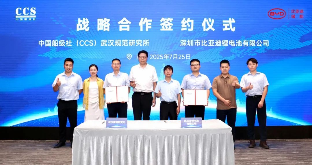 中國(guó)儲(chǔ)能網(wǎng)訊:2025年7月25日,比亞迪儲(chǔ)能與中國(guó)船級(jí)社武漢規(guī)范研究所(簡(jiǎn)稱(chēng)“CCS武漢所”)在深圳坪山舉行戰(zhàn)略合作簽約儀式。中國(guó)船級(jí)社武漢規(guī)范研究所黨委書(shū)記劉東、中國(guó)船級(jí)社武漢規(guī)范研究所副所長(zhǎng)魏穎春、中國(guó)船級(jí)社武漢規(guī)范研究所電池船首席技術(shù)專(zhuān)家黃朝霞、比亞迪儲(chǔ)能新型應(yīng)用產(chǎn)品線總監(jiān)姜新軍、研發(fā)中心副總監(jiān)江鈺鋒、銷(xiāo)售總監(jiān)王宏博等出席。