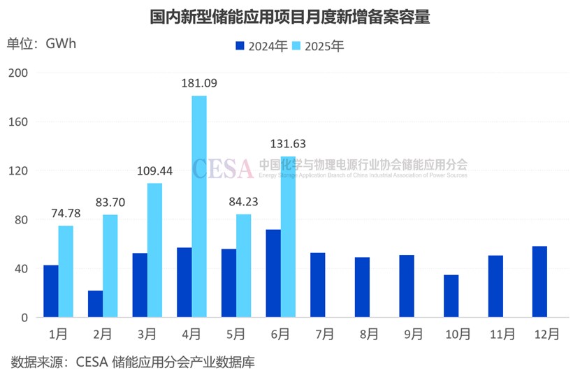 2025年上半年新增備案的7113個(gè)儲(chǔ)能應(yīng)用項(xiàng)目總規(guī)模達(dá)263.3GW/664.86GWh,同比增長108.85%(功率)/120.45%(容量)。