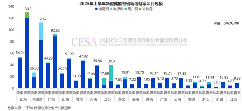 就區(qū)域分布來看,2025年上半年,山東新型儲(chǔ)能新增433個(gè)儲(chǔ)能應(yīng)用備案項(xiàng)目,主要為獨(dú)立儲(chǔ)能項(xiàng)目,總規(guī)模達(dá)54.04GW/130.2GWh,居全國首位。