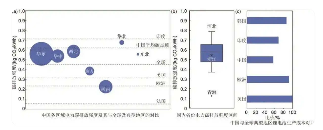 中國(guó)與全球電力碳排放及鋰電池生產(chǎn)成本對(duì)比