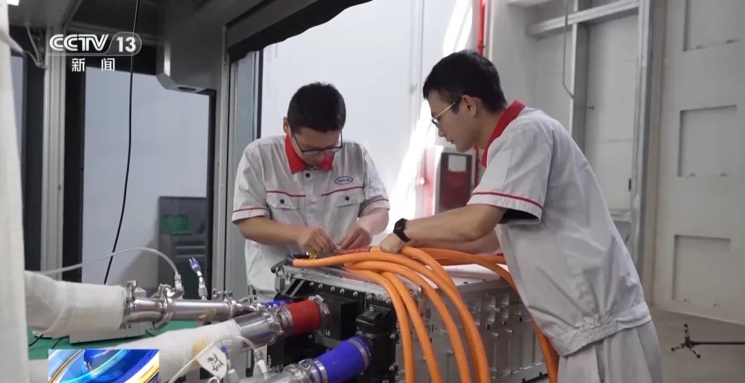 在一個實(shí)驗(yàn)室里,會將燃料電池堆放入一個發(fā)動機(jī)內(nèi),檢測它在行駛過程中的持續(xù)輸出電能的能力。