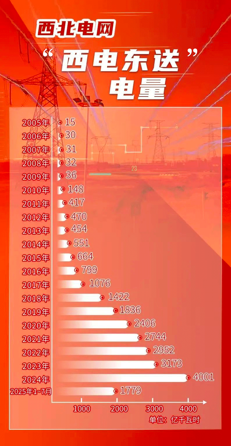 截至2025年7月,西北電網“西電東送”累計外送電量已突破2.5萬億千瓦時。從2005年7月到2025年7月,西北電網“西電東送”已走過了整整20年。