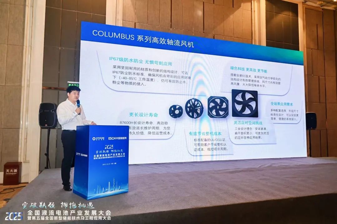 7月24日,Regal Rexnord能效解決方案事業(yè)部亞太區(qū)儲能行業(yè)經(jīng)理陳杰在《電化學(xué)儲能技術(shù)專場》分論壇發(fā)表了重要技術(shù)演講——《聚焦能效挑戰(zhàn) 為儲能應(yīng)用而生:Columbus系列高效軸流風(fēng)機(jī)解決方案》,就儲能行業(yè)市場趨勢、客戶需求的變化展開分享,并重點(diǎn)介紹了旗下風(fēng)機(jī)行業(yè)“隱形冠軍”品牌NICOTRA | Gebhardt® Columbus系列高效軸流風(fēng)機(jī)解決方案,與現(xiàn)場嘉賓深入探討。